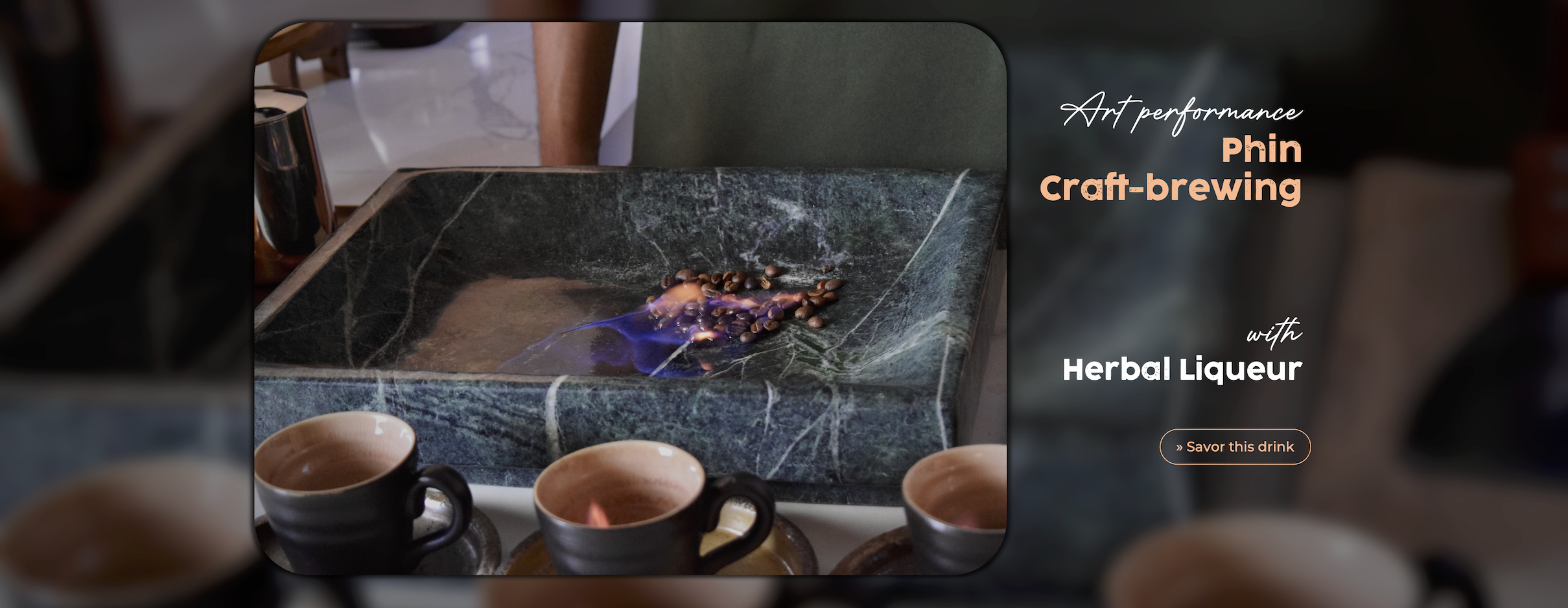 Duy nhất tại Việt Nam mang đến trải nghiệm craft-brew (rang-xay-pha thủ công) trêm nền gia nhiệt bởi rượu thảo mộc ủ riêng từ Cà Phê X. Phương thức này sẽ giúp hương và vị của cà phê Việt được nổi bật hơn, đậm vị hơn, chuẩn vị riêng hơn.